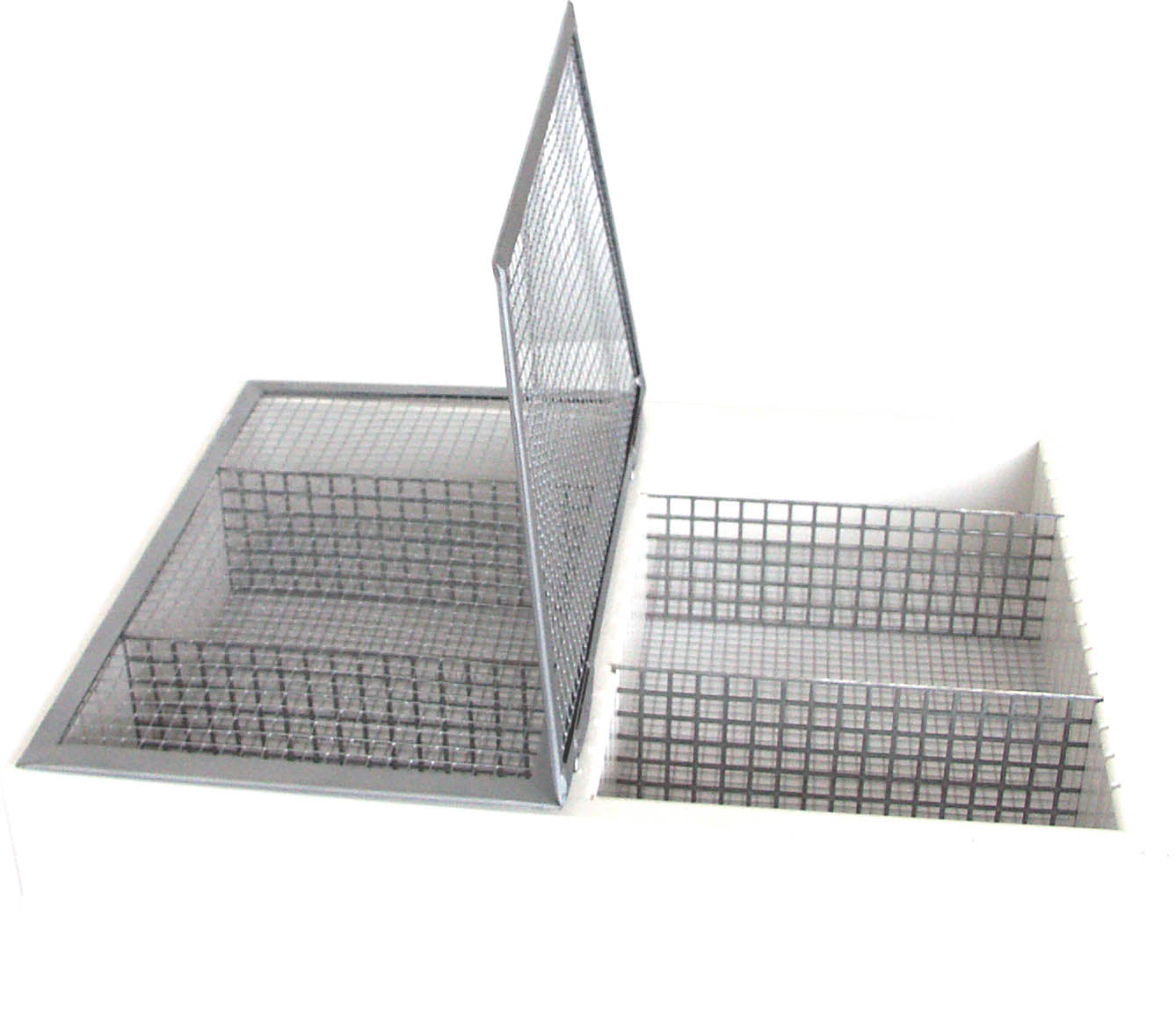 Neben den oben abgebildeten "einfachen"Schlupfhorden können Sie auch die praktischen Stammschlupfhorden mit Abdeckung und mehrfacher Unterteilung wählen. Der Vorteil besteht einerseits darin, dass die Küken dadurch unmöglich über den Rand der Horde springen können, und andererseits vor allem darin, dass verschiedene Stämme voneinander getrennt eingelegt werden können.